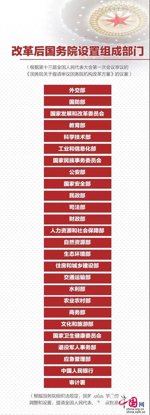 改革后,除国务院办公厅外,国务院设置组成部门26个: